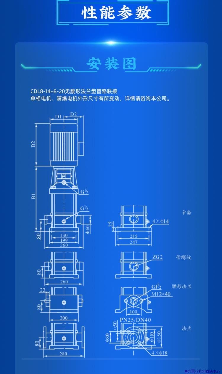 杭州南泵多级泵增压循环泵CDL/CDLF200-10/20/30-40FSWPC立式