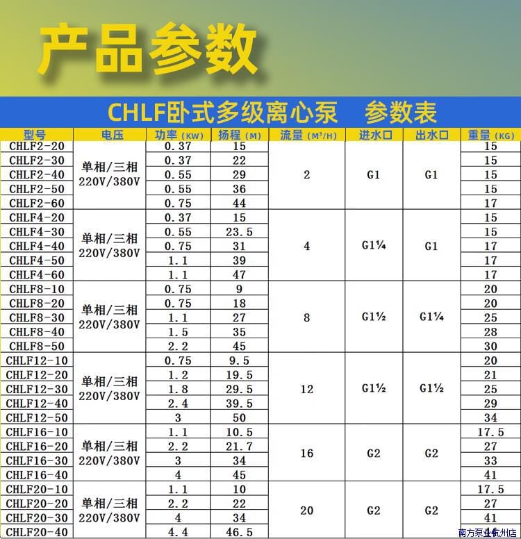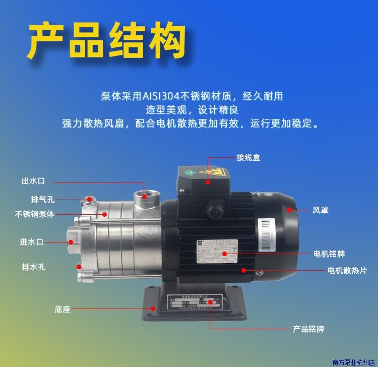 南方泵业CHLF系列轻型卧式多级离心泵,采用AISI304不锈钢材质,结构美观,耐腐蚀,使用寿命长。产品具有大流量、高扬程、低能耗、噪音小、运行稳定等优点,适用于工业废水、制药、食品饮料、水净化处理和工业清洗等多种场景。配备强力散热风扇,电机散热效果更佳,确保长时间稳定运行。安装便捷,维护简单,支持单相/三相电压,多种型号可选,满足不同工况需求。提供一年质保,原厂发货,正品保障,专业客服支持,全国联保,是工业领域可靠的动力之选。