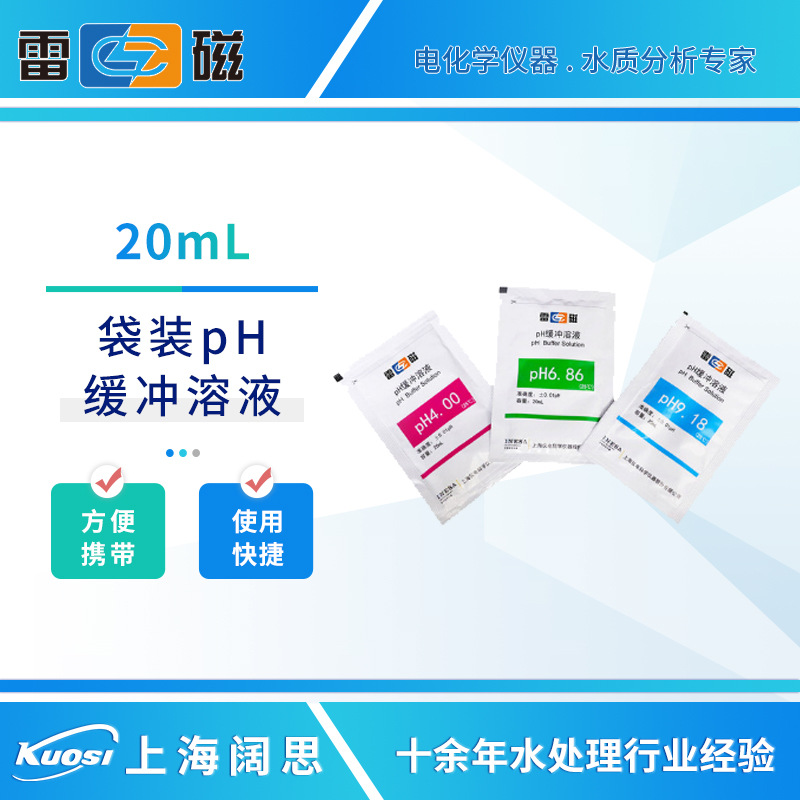 雷磁ph标准液ph计校准液袋装pH缓冲溶液PH4.00/6.86/9.18缓冲试剂