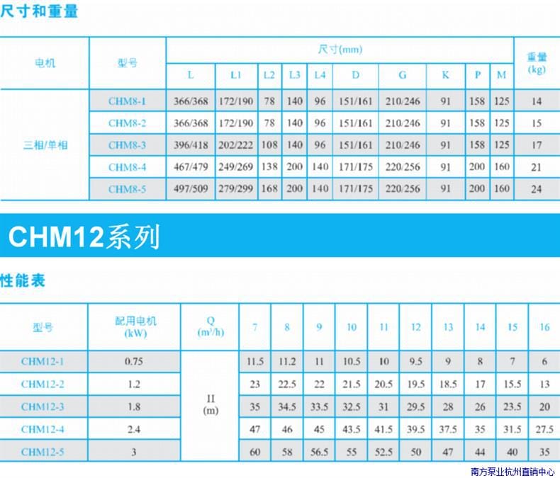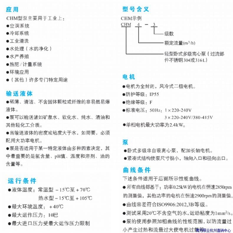 浙江南泵流体机械有限公司专业研发、生产与销售CHM系列轻型卧式多级离心泵。该系列产品广泛应用于空调系统、冷却循环、工业清洗、水处理、水产养殖及施肥计量系统等场景,适用于输送清洁、稀薄、不含固体颗粒或纤维的非易燃易爆液体,如软化水、纯水、清油及轻化工介质。 CHM系列泵采用不锈钢304/316L过流部件,具备良好的耐腐蚀性能。泵型包括CHM2、CHM4、CHM8和CHM12等多个规格,流量覆盖广,扬程可达60米以上,配用电机功率从0.37kW至3kW,满足不同工况需求。电机为全封闭风冷式二极设计,防护等级IP55,绝缘等级F,确保长期稳定运行。 运行条件:液体温度范围-15℃至+105℃,最大工作压力达10巴。产品结构紧凑,轴向进水、径向出水,安装维护便捷。公司在全国设有多个服务网点,提供及时专业的技术支持与售后服务。南泵流体致力于为客户提供高效、可靠、节能的流体解决方案。