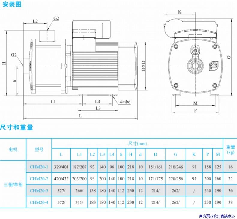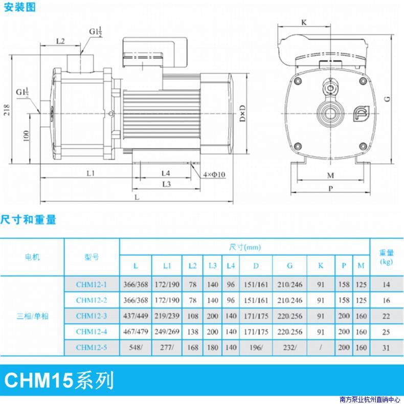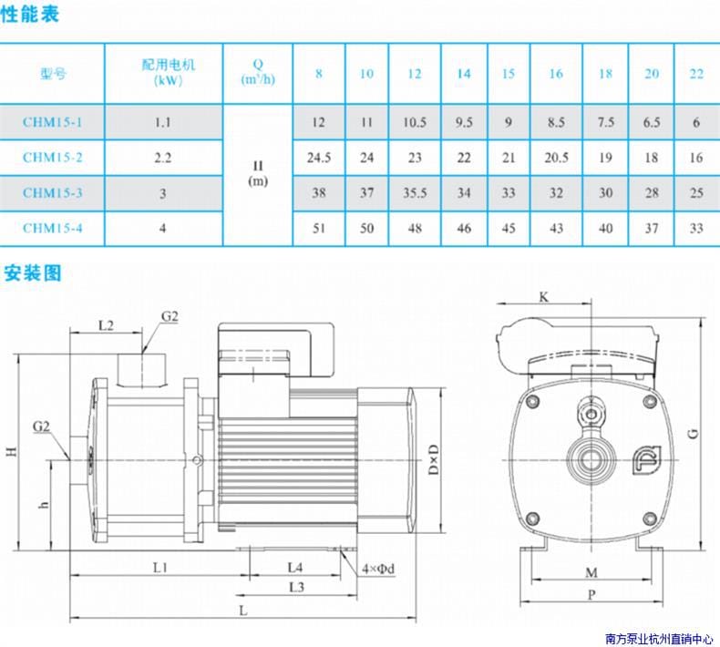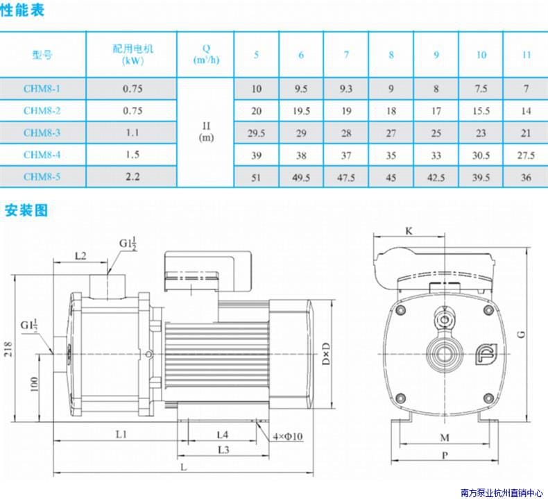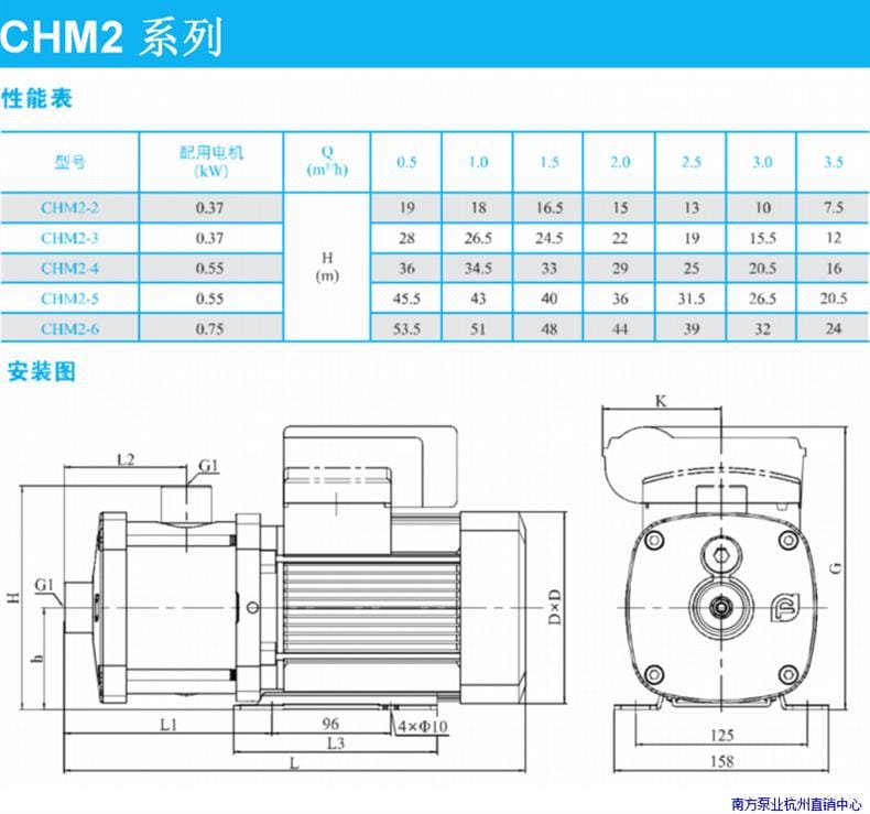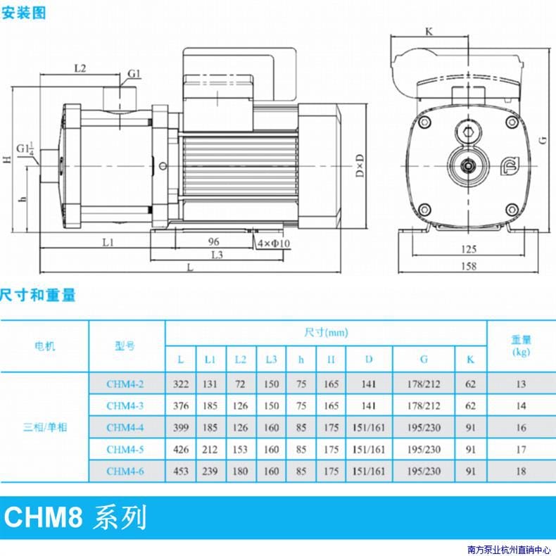 〉 南泵流体CHM2-4-8-12-15-20卧式多级不锈钢离心泵增压热水供水泵