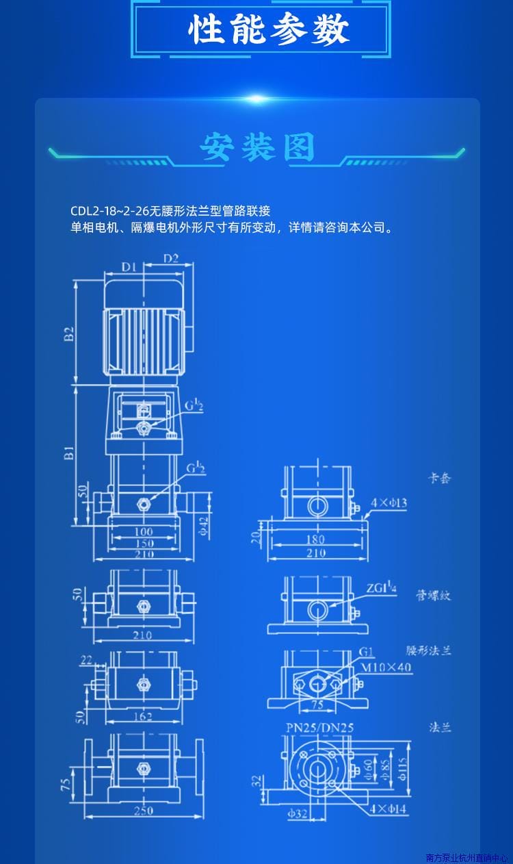 〉 杭州南泵CDL/CDLF2-13/15/18/22冷却泵立式多级离心泵增压工业泵