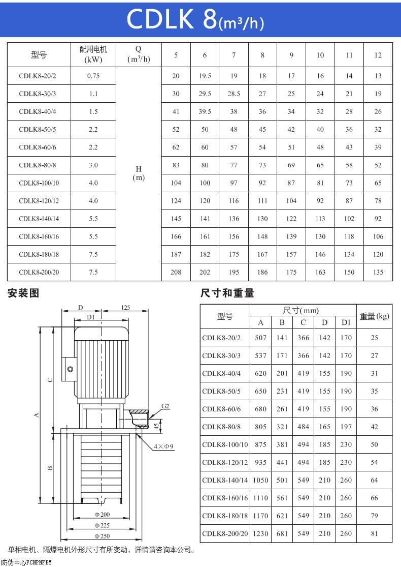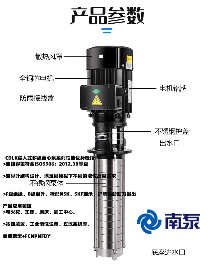 南方泵业CDLK/F系列浸入式多级离心泵,专为工业高强度应用设计。产品采用100%纯铜线圈电机,F级绝缘、B级温升,配备NSK/SKF轴承,确保持久稳定运行。泵体、叶轮等过流部件均采用304/316不锈钢材质,食品级卫生标准,耐酸碱、耐腐蚀。叶轮采用激光全焊接技术,精度高、强度好;机械密封耐高温达110℃,拆卸便捷,抗磨损、防堵塞。适用于电火花机、车床、磨床、加工中心、冷却设备、工业清洗及过滤系统等场景。支持多种型号定制,液下深度灵活,扬程流量覆盖广,性能符合ISO9906:2012 3B等级标准。官方正品,假一赔十,可开发票,全国联保,提供免费选型与上门售后服务。
