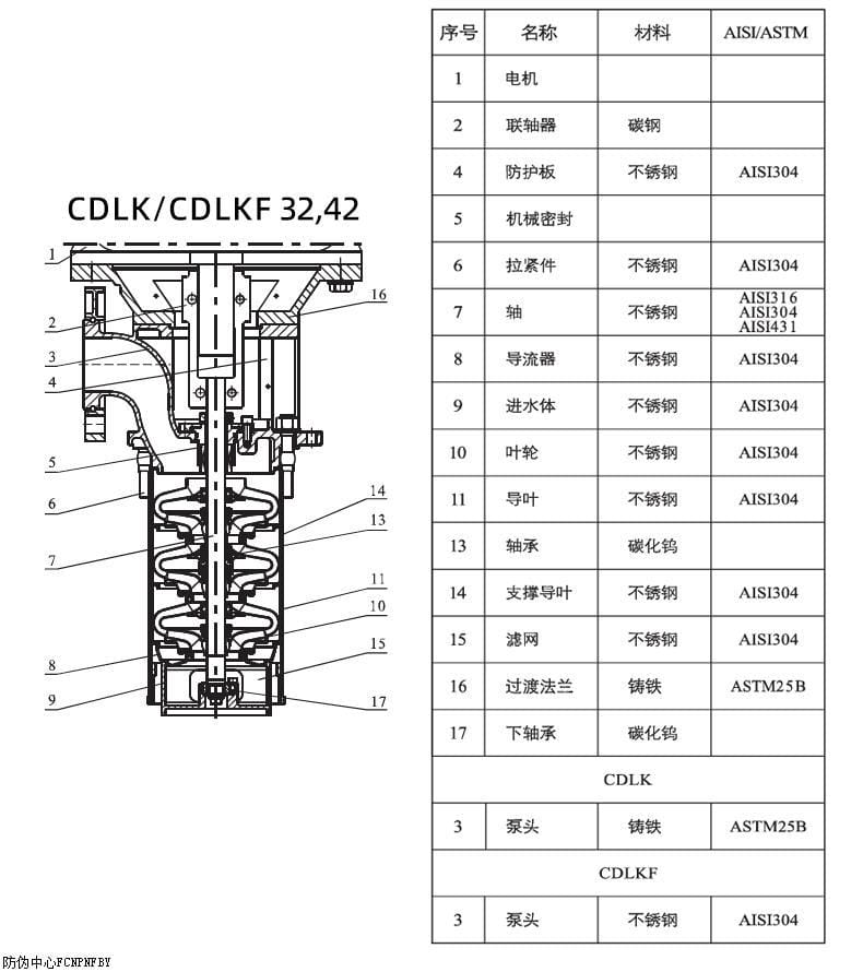 南方立式多级离心泵配件CDLF8-4FSWSR 液体输送泵机械密封/轴封