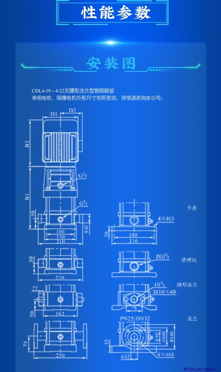 〉 杭州南泵CDL/CDLF4-14/16/19/22立式多级离心循环增压工业水处理