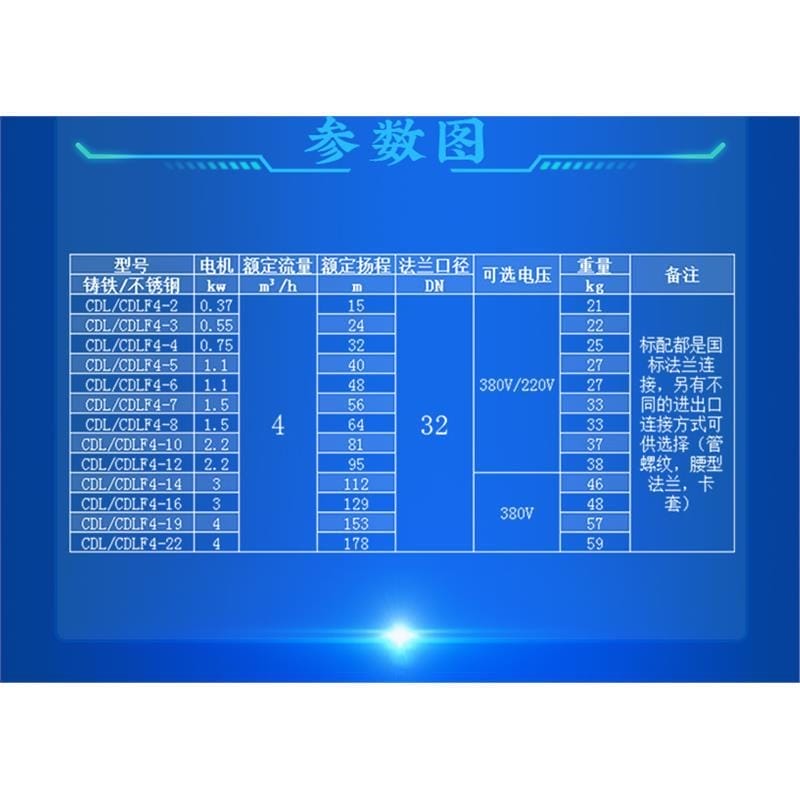 南方泵业CDL/CDLF系列轻型立式多级离心泵,采用不锈钢泵体设计,外形美观、结构紧凑、维护方便,广泛适用于从自来水到工业液体的各种介质输送。其中CDL系列适用于无腐蚀性液体,CDLF系列适用于轻度腐蚀性液体。 该系列产品具有节能、低噪、运行稳定、经久耐用、环保可靠等优点,配备全封闭风冷式二级电机,防护等级IP55,绝缘等级F级,适应常温至120℃热水工况,环境温度最高达40℃,海拔不超过1000米。 应用领域包括:市政供水、高层建筑二次供水、工业流程增压、冷却系统、锅炉给水、反渗透与超滤水处理系统、农田灌溉及喷滴灌系统等。 主要型号如CDL4-2至CDL4-22,流量覆盖15~178 m³/h,扬程可达21~59米,标配国标法兰连接,可选管螺纹、腰形法兰或卡套接口,电压可选单相220V或三相380V。 提供一年质保服务,原厂正品保障,专业客服支持,闪电发货,全国联保,售后无忧。选择南方泵业,品质与服务双重保障。