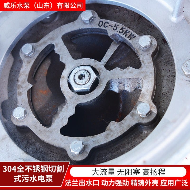 这是一款高性能的304全不锈钢切割式污水电泵,具备大流量、无阻塞、高扬程特点,广泛应用于各种复杂工况。产品采用国标法兰出水口,可连接弯头或法兰片,出水速度快且安装方便;配置优质全铜电机与双端面机械密封,搭配油缸结构,确保运行稳定、无泄漏;内置热保护装置,有效防止电机过热烧毁,提升使用安全性。泵体采用精铸304不锈钢材质(可选316/316L),耐酸碱、耐腐蚀,所有螺丝均为不锈钢材质,适应恶劣环境。大孔径加厚底座设计增强稳定性,铁芯与机壳全接触实现优良散热,温升更低,支持高温定制。叶轮具备搅匀与切割功能,有效处理含杂质污水。标配7米国标铜电缆线,可按需求加长,支持电压频率定制。适用场景包括:工厂、商业严重污染废水排放、城市污水处理厂、住宅区污水站、人防系统、医院宾馆排污、市政工程、建筑工地、农村沼气池、农田灌溉及自来水厂供水等。另可配套水泵专用控制柜及消防电气控制系统,提供完整解决方案。