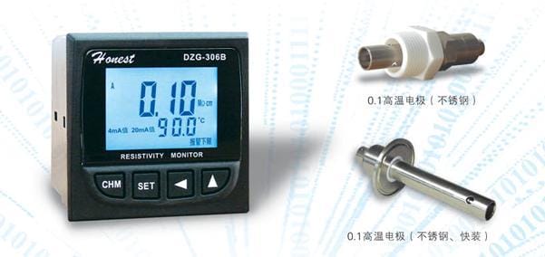 DZG-306B型(LCD)电阻率仪是一台采用单片机电路进行测量和补偿的智能型电阻率测量仪器,采用大屏幕背光液晶显示器、中文提示操作,适用于高温蒸馏水行业制水设备在线电阻率的测量和控制。