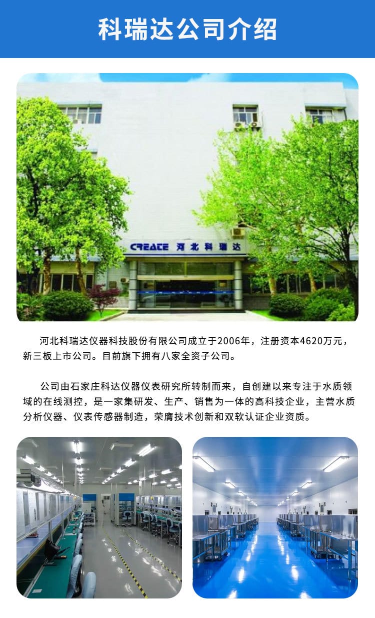 科瑞达CCT-3320系列电导率仪是专为低端市场设计的经济型智慧仪表,适用于纯水检测、污水处理和溶液浓度监测等场景。作为CM-230的升级款,具备全量程自动转换、程序化自动校正和数字化温度补偿功能。支持电导率(uS/cm)和TDS(ppm)双工程单位切换,测量准确度高,电导率精度达1.5级,温度精度±0.5℃。设备采用面板嵌装式安装,尺寸紧凑(48mm×96mm×80mm),适用于工业现场连续监测。配备NTC10K温度元件,工作环境温度0~50℃,防护等级高,稳定可靠。河北科瑞达仪器科技股份有限公司(Create Instrumentation)是新三板上市高新技术企业,专注于水质在线测控领域,产品广泛应用于环保、电力、化工等行业。