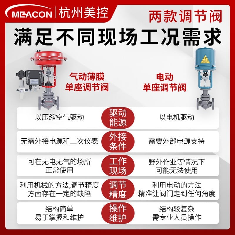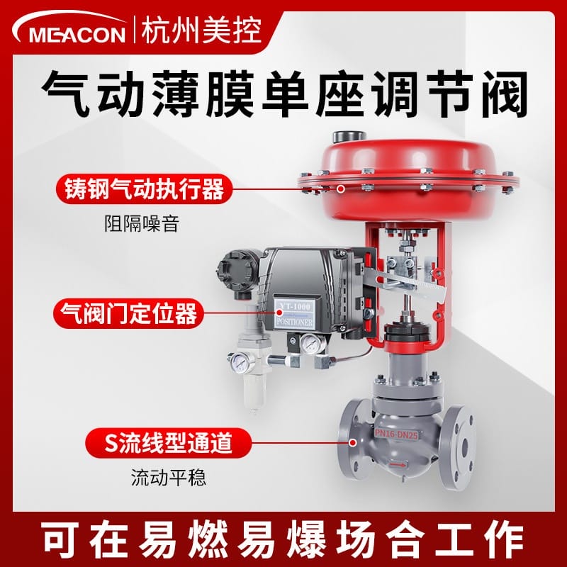 MEACON杭州美控作为国家高新技术企业及中国仪器仪表学会理事单位,专业研发生产工业自动化控制阀。YT-1000系列调节阀包含气动薄膜单座调节阀和电动单座调节阀两款,满足不同现场需求。产品采用304不锈钢材质,铸钢阀体与执行器,结构紧凑,防腐防锈,使用寿命长。 该系列阀门公称通径DN15-DN600,公称压力可达1.6MPa(PN16),固有可调比高达50,具备直线与等百分比流量特性,额定流量系数提升30%,流道设计合理,压力损失小,流动平稳。密封等级达到Ⅵ级(零泄漏),适用于高要求切断与调节场景。 气动型以压缩空气驱动,可在无电环境下稳定运行,适合野外或易燃易爆场合;电动型通过电机驱动,精度高,支持4~20mA信号控制,实现精准角度调节。产品通过ISO9001、CE认证,并由TÜV莱茵监督生产,品质可靠。 广泛应用于化工、电力、石油、冶金、轻纺、造纸等行业。企业年产超30万套传感设备,拥有45000㎡智能化生产基地,服务网络覆盖全国30多个城市,提供30天远程指导、上门调试及无理由退换服务,客户涵盖农夫山泉、三一重工、长安汽车、可口可乐等知名企业。