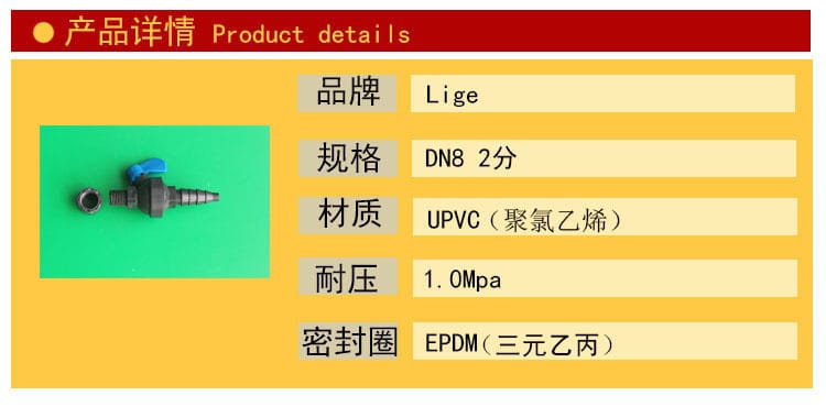 力高(Lige)UPVC/PPH取样阀,规格DN8(2分),接口尺寸1/4英寸,采用高品质UPVC或PPH材料制造,具备优异的耐酸碱和耐腐蚀性能,适用于化工、环保、水处理等严苛工况。密封圈采用EPDM(三元乙丙橡胶),耐压达1.0MPa,确保长期稳定密封。 产品默认配套20*1/4接头发货,安装方式根据材质不同可选:UPVC使用PVC胶水粘结,CPVC使用专用胶水,PPH则采用承插热熔连接(DN100以下推荐),连接牢固,耐压性能优异。 源头工厂直供,先进自动化生产线保障产品质量与稳定供货能力,支持定制开模。快递通常24小时内发货(节假日顺延),常规发圆通、韵达,物流发中通快运;如需顺丰或其他物流,请提前联系客服。 【温馨提示】 - 管件切割可能存在毛边,介意者慎拍;管材1米起售,大规格(DN200及以上)4米整根起发。 - 阀门配件支持7天无理由退换(不影响二次销售),管材非质量问题不退不换。 - 运输过程中可能产生轻微划痕,属正常现象,不影响使用。如有错发漏发,请及时联系客服处理。