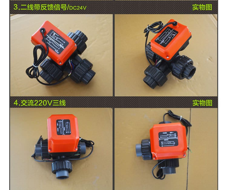 UPVC胶粘开关带反馈三通电动球阀AC220V