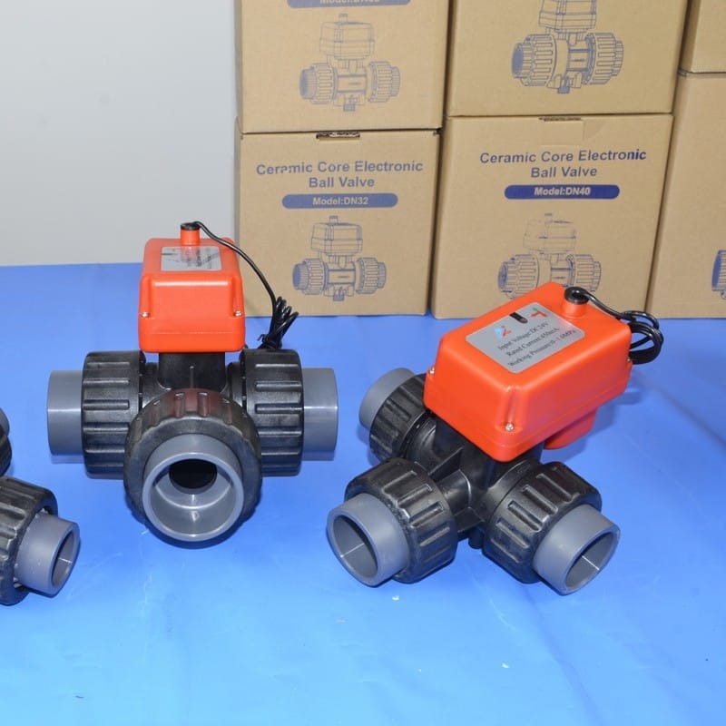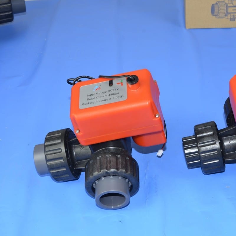 AOBL电动PVC双由令球阀开关门型塑胶由令阀门DN15 20 25 32 40 50