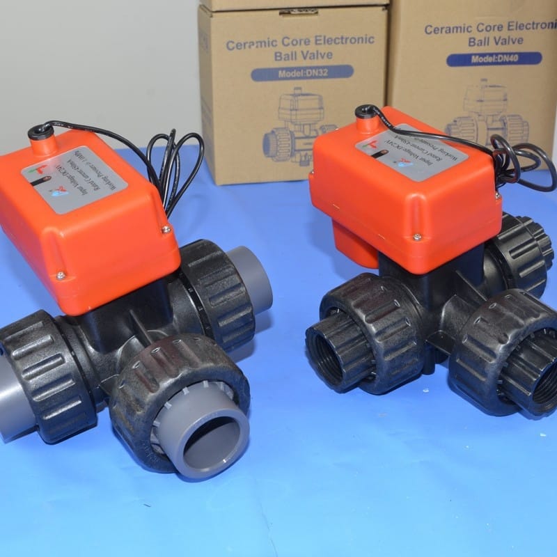 AOBL电动PVC双由令球阀开关门型塑胶由令阀门DN15 20 25 32 40 50