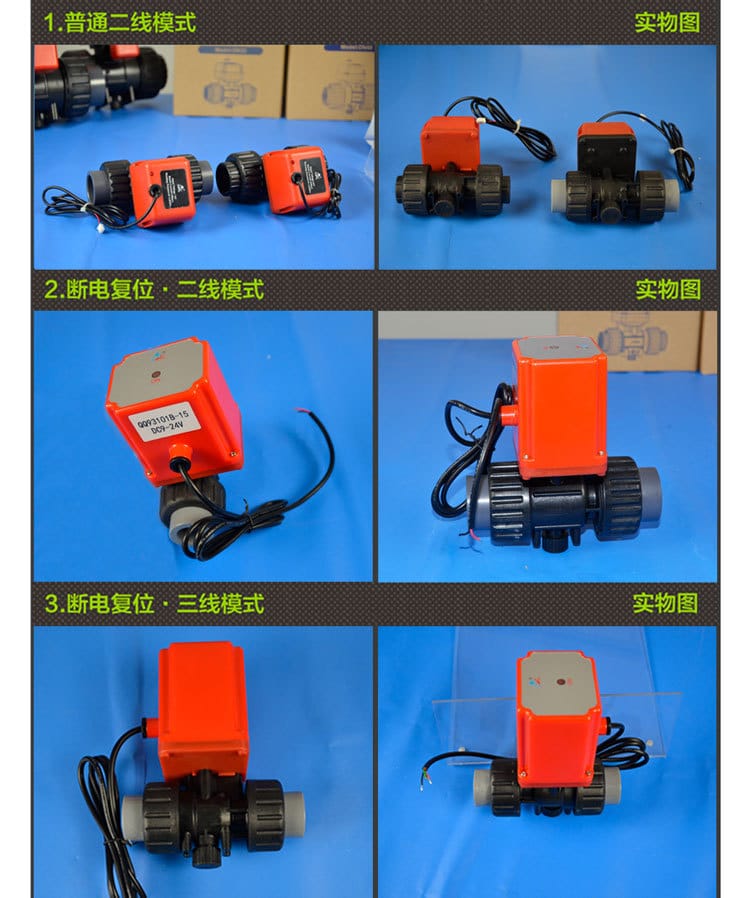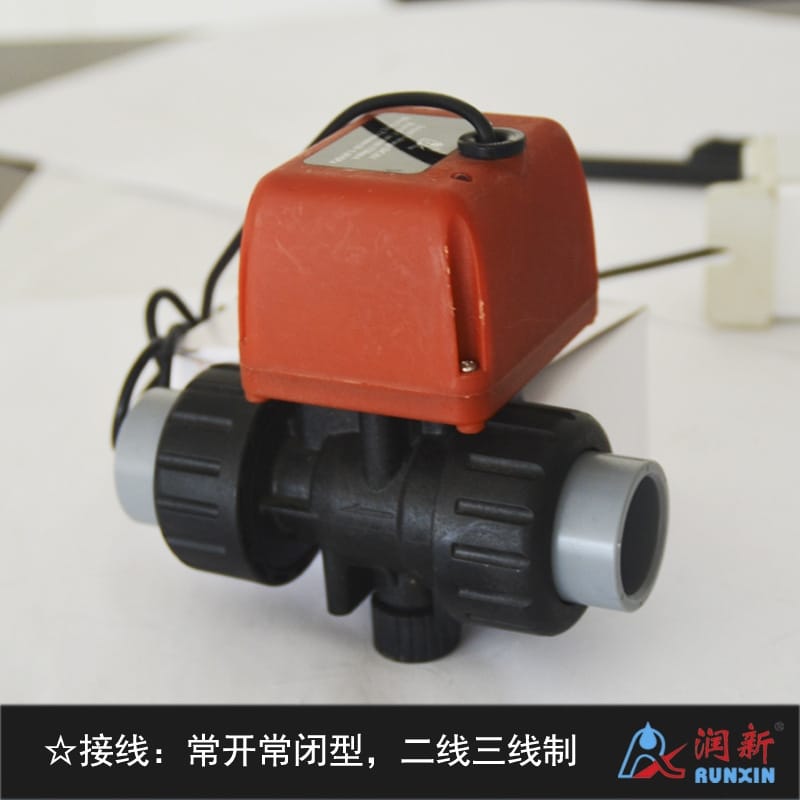 润新小型电动塑料球阀 二线三线断电复位常开常闭电磁球阀6分DN20