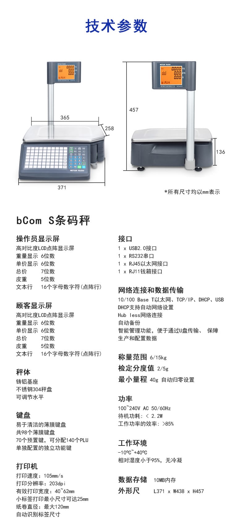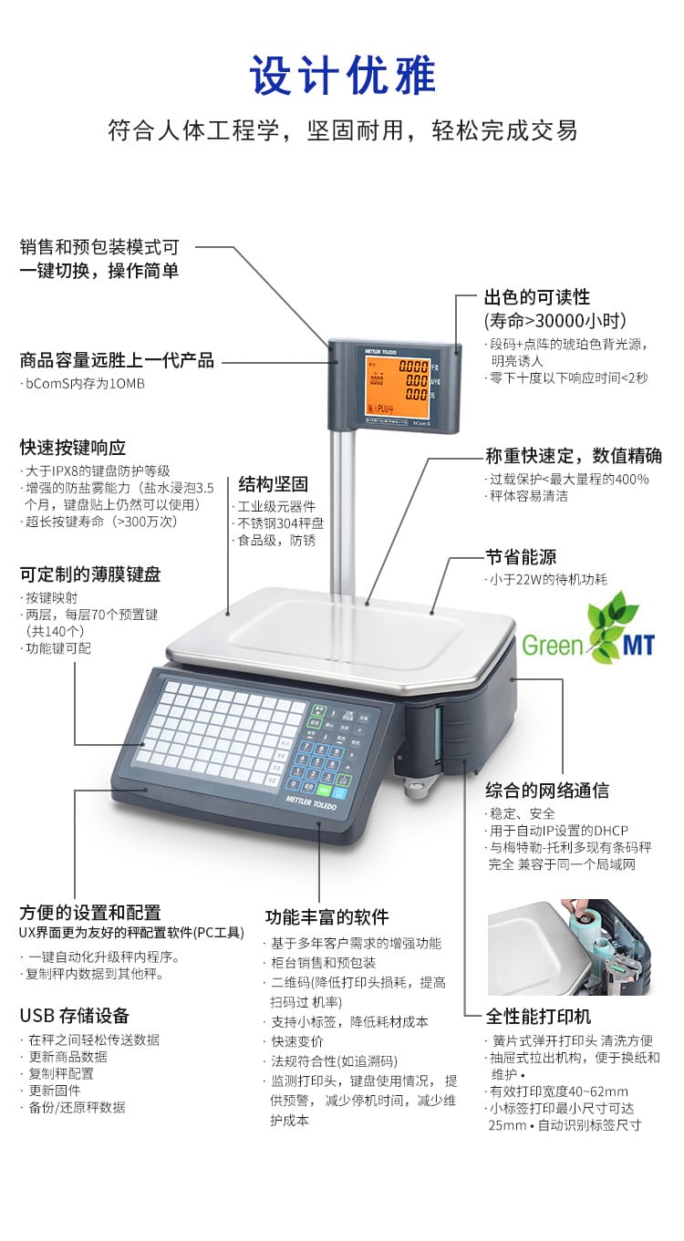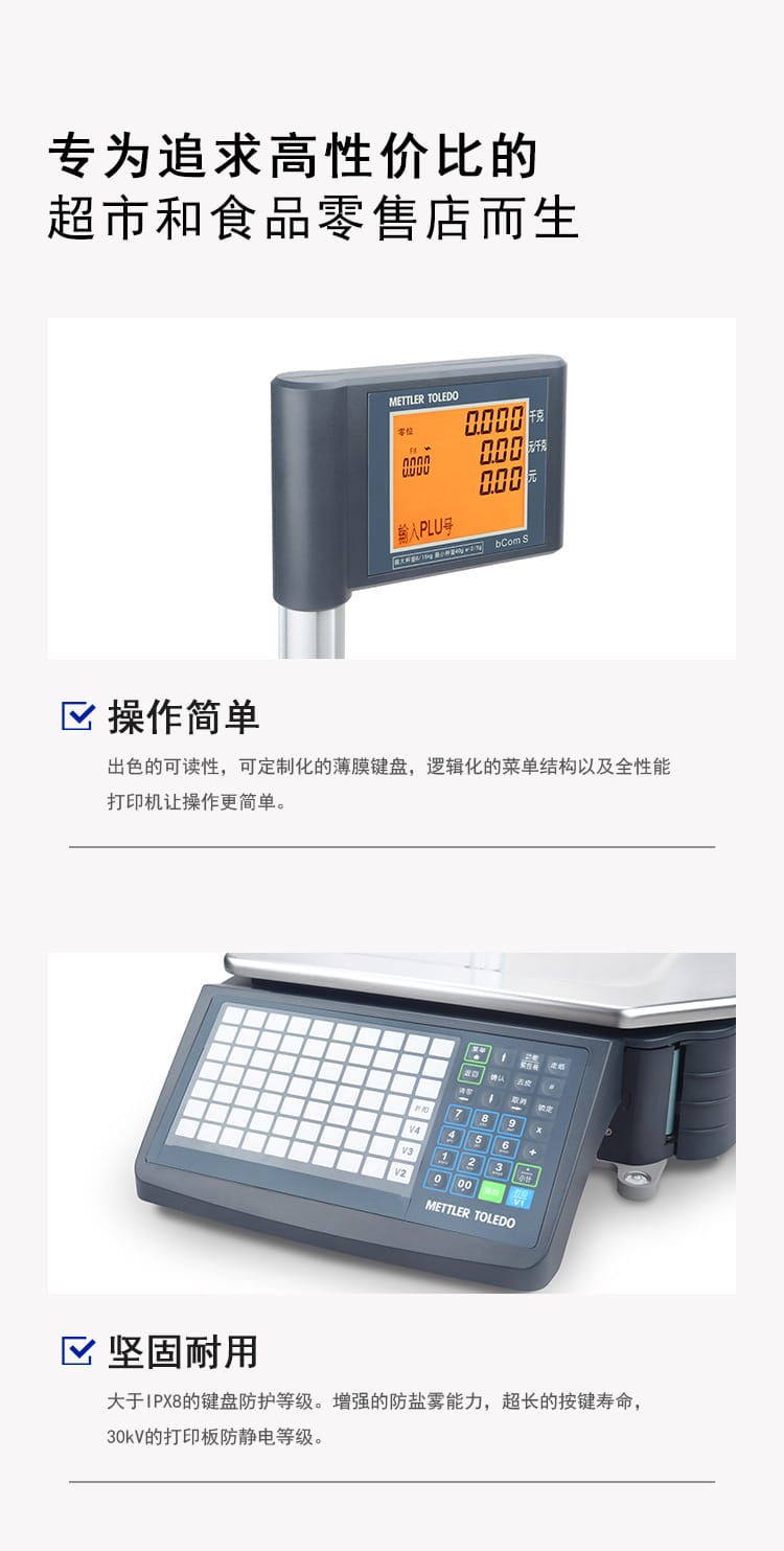 〉 梅特勒托利多bCom S超市条码秤电子秤商用秤超市称重打印一体机