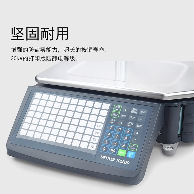 梅特勒托利多RLEOO条码秤专为追求高性价比的超市和食品零售店设计,集坚固、智能、耐用与高效管理于一体。采用高对比度LCD点阵显示屏,重量、单价、总价清晰显示,配备不锈钢304秤盘,耐腐蚀、易清洁,适用于水果、蔬菜、零食、粮油等各类商品称重场景。 该条码秤具备大于IPX8的键盘防护等级,增强防盐雾能力,按键寿命超过300万次,支持-10℃以下快速响应,确保在复杂环境中稳定运行。内置10MB内存,支持PLU快捷调用、快速变价、数据备份与固件升级,可通过USB或以太网实现数据传输与自动IP设置(DHCP),兼容现有梅特勒托利多设备网络。 配备全性能打印机,支持小标签打印(最小25mm),有效打印宽度40~62mm,打印速度达105mm/s,降低耗材成本并提升扫码通过率。支持柜台销售与预包装模式一键切换,操作简单,提升收银效率。同时具备待机功耗低于2.2W的节能设计,符合现代绿色商用需求。 广泛应用于中小超市、生鲜市场、便利店等场景,是零售行业高效、可靠、智能的称重解决方案。
