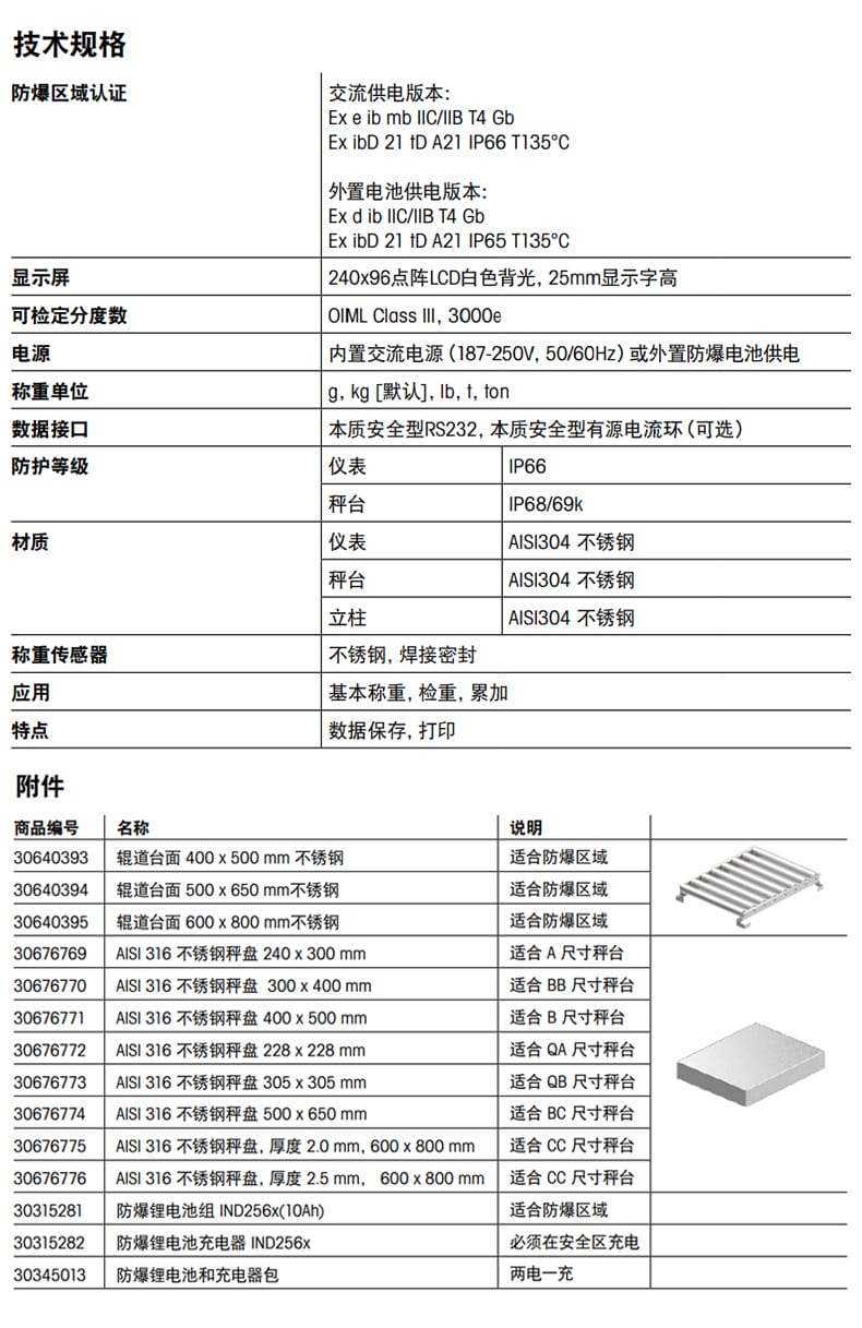 提供多种秤台尺寸(228x228mm至600x800mm)和量程选择(3kg至600kg),适配不同工业需求。可选AISI316不锈钢秤盘、防爆锂电池组及充电器包等附件,灵活扩展应用。