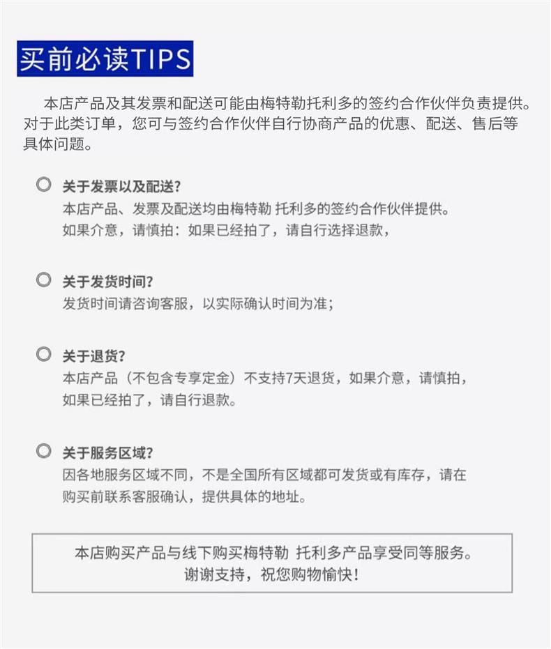 本产品由梅特勒托利多官方授权合作伙伴提供发票与配送服务,享受与线下门店同等售后服务,具体发货与服务区域请咨询客服确认。