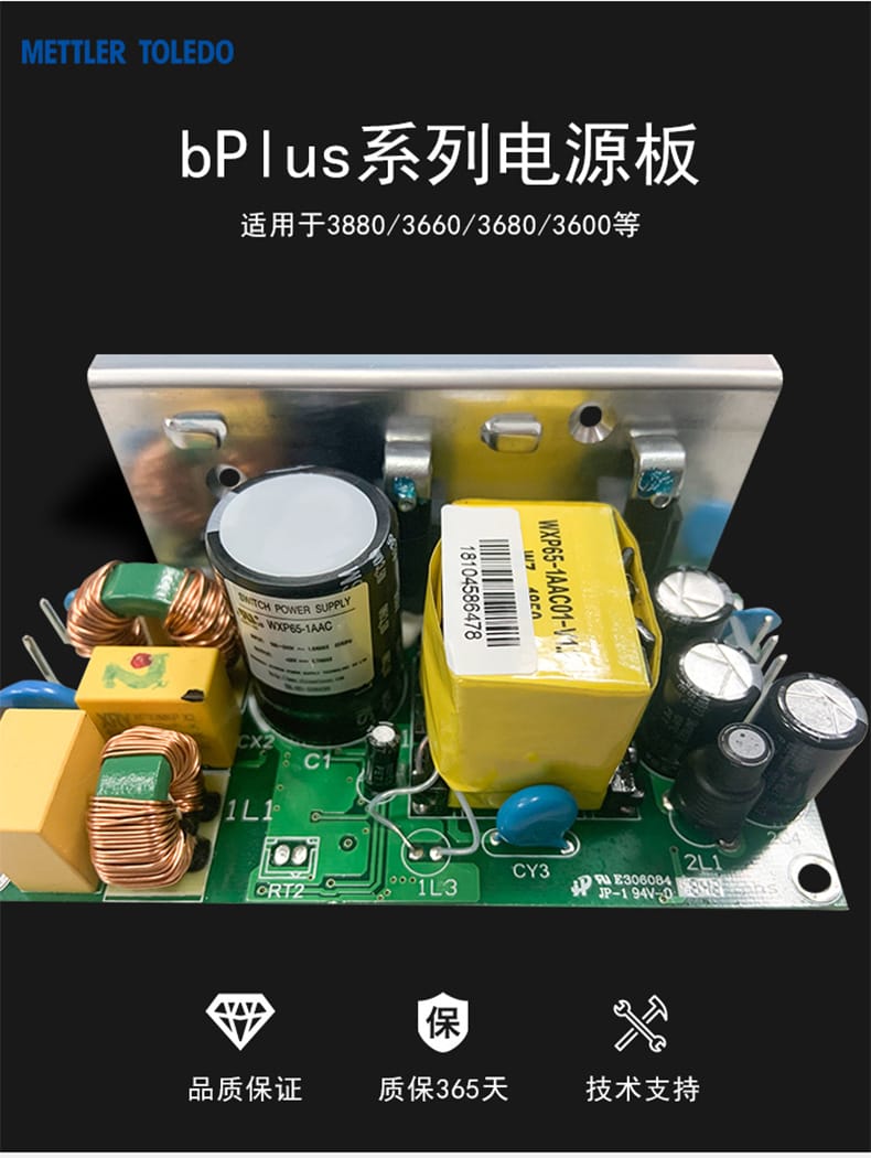本产品为梅特勒托利多(METTLER TOLEDO)原装bPlus系列电源板,型号WXP65-1AAC,适用于3880、3660、3680、3600等多种设备。产品符合CN POWER SUPPLY标准,版本号V1.4A,具备稳定输出与高可靠性,广泛应用于工业称重与自助服务设备中。每一块电源板均经过严格质检,确保性能稳定,支持长期运行。提供365天质保服务,正品保障,享受与线下同等的梅特勒托利多官方技术支持与售后服务。适用于RL00、Bcom及EVO自助服务秤系列设备。购买前请咨询客服确认库存与配送区域。