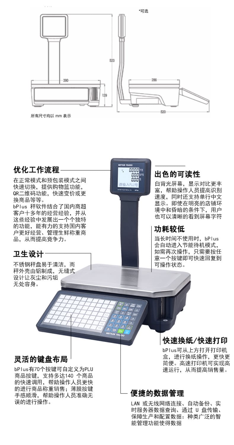 〉 梅特勒托利多商超电子秤bPlus条码秤打码称水果超市收银称一体机