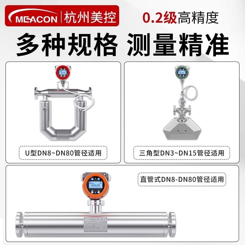 MEACON(杭州美控)是专业的流量计生产厂家,拥有45000m²现代化智能厂房,年产超30万台传感设备。公司专注研发和制造高精度科里奥利质量流量计,精度达0.2级,具备全自动SMT贴片产线和千万级流量标定装置,国内少有DN1000大口径标定能力,并配备超音速气体标定系统,确保每一台仪表精准稳定。 产品涵盖U型、三角型、直管型科里奥利质量流量计,测量变量包括质量流量、密度、温度,支持4-20mA、RS485、HART等多种信号输出,适用于石油化工、食品饮料、医药、能源电力、水处理等多个行业。 主要特点: - 测量精度高:流量0.2级/0.5级,密度准确性±0.002g/cm³ - 口径齐全:DN3-DN150,满足不同工况需求 - 多种类型可选:直管型(DN8-DN80)、U型(DN20-DN150)、三角型(DN3-DN15) - 防护等级IP67,支持高低温、干扰、气密性等多重可靠性测试 - 全国30+服务网点,支持上门选型、技术培训与售后支持 已服务中国航天、中船重工、农夫山泉、可口可乐、华为、长安汽车等超70万客户,品质广受认可。选择MEACON,选择高精度、高稳定性的流量测量解决方案。