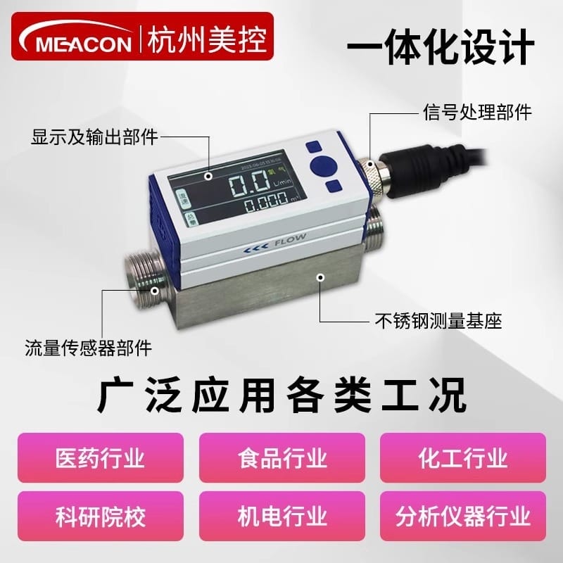 MEACON(杭州美控)专注于微小气体流量计量解决方案,提供高性能热式气体质量流量计(MFM系列),适用于压缩空气、氧气、氮气、氢气等多种气体的精确测量。产品采用32位高性能处理器,主频高达240MHz,量程比达100:1,测量精度为±1.5%FS,重复性好,响应时间快。 系列产品包括FTM200多种型号,覆盖0.2~300L/min常规量程,支持定制化需求。具备LCD液晶显示,屏幕可180°翻转,实时显示瞬时流量与累计流量,单位为L/min和m³(标况)。支持Modbus RTU、4~20mA、脉冲输出等多种信号传输方式,满足不同工业场景集成需求。 产品采用一体化不锈钢测量基座,具备良好的稳定性和耐用性,工作压力≤1MPa,工作温度-10~+55°C,防护等级高,适用于医药、食品、化工、科研院校及机电行业。拥有近100项技术专利,通过ISO、SGS、CE等权威认证,是国家标准主要起草单位,荣获‘专精特新’企业称号。 依托45000m²智能化生产基地,年产能超30万台,服务超过70万客户,全国设有30+技术服务办事处,为中船重工、长安汽车、可口可乐、中国航天等企业提供可靠支持。