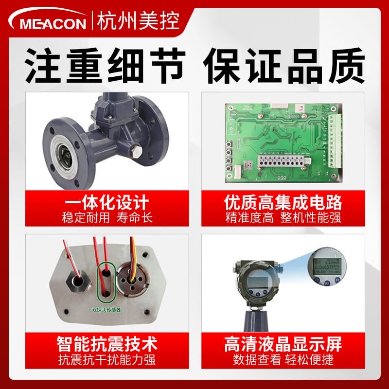 MEACON(杭州美控)旋进旋涡流量计是一款专为易燃易爆气体流量测量设计的高性能仪表,广泛应用于天然气、煤气、丙烷、空气、氮气等纯净气体的贸易计量与工业过程控制。产品采用一体化设计,无机械可动部件,稳定耐用,寿命长,无需特殊维护。具备抗干扰能力强、功耗低、防腐蚀、易安装等优势。 核心特点: - 智能抗震技术,有效抑制震动和压力波动干扰; - 双探头传感器设计,提升测量精度与稳定性; - 支持频率脉冲、4~20mA模拟信号输出,并配备RS485接口,可实现远距离数据传输(可达1.2km); - 可选内置锂电池或外部供电,适应多种现场环境; - 支持GPRS远传通信,便于远程监控与管理; - 提供带温度压力补偿(Y型)与无补偿(N型)两种版本,满足不同应用场景需求。 产品精度等级为1.0级和1.5级,公称通径DN15-DN200,测量范围宽,壳体可选铝合金或304不锈钢材质,适用于高压环境(最高可达25.0MPa)。作为国家标准主要起草单位,MEACON拥有近100项技术专利,通过ISO、SGS、CE等多项权威认证,服务客户涵盖农夫山泉、可口可乐、长安汽车、中国航天等知名企业,是值得信赖的民族仪表品牌。