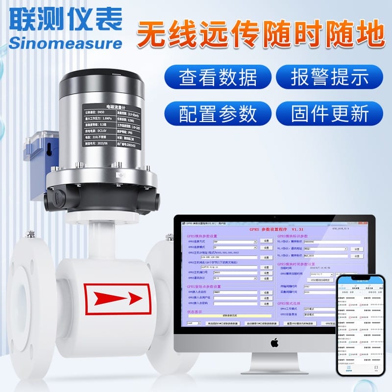 〉 联测无线智能电磁流量计管道污水DN65/80/300485一体式污水流量计