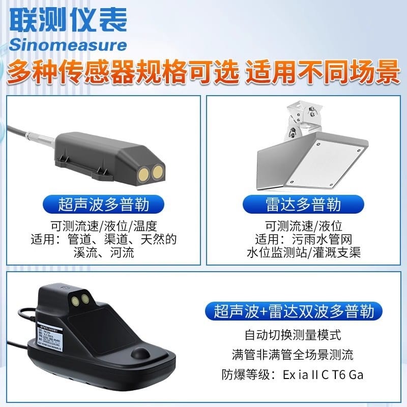 〉 联测多普勒超声波流量计雷达流速仪污水管道明渠液体水量水位电子
