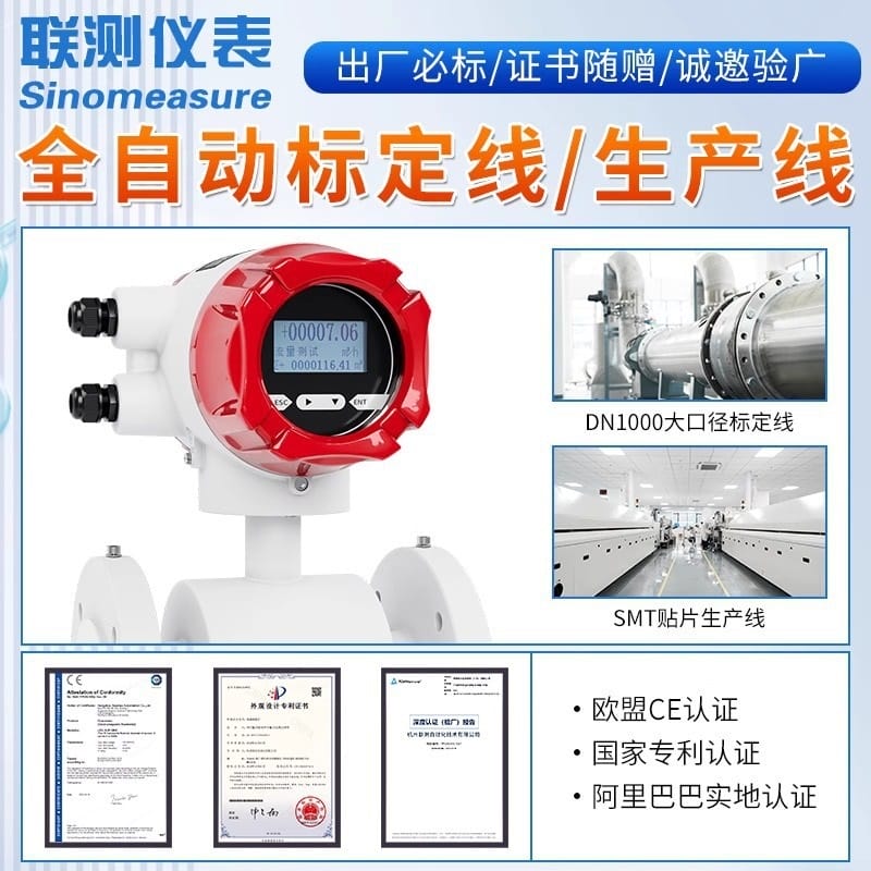 〉 联测电磁流量计纸浆泥浆低电导率液体污水一体智能管道流量计量表