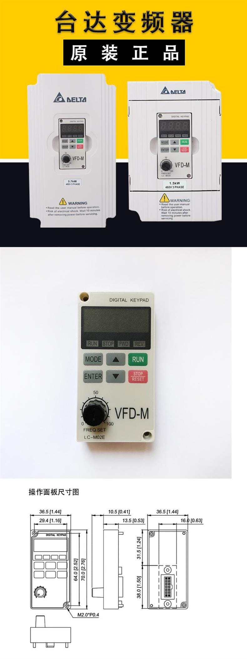 台达变频器LC-M02E LC-M2E VFD-M 0.75 1.5 2.2 3.7 5.5 7.5 KW显示键盘面板,有问题请及时咨询客服