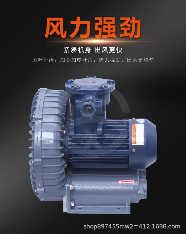 全风环保科技股份有限公司专业生产FB系列防爆高压鼓风机,产品采用铸铝机壳、航空铝材高压螺旋风叶和防爆高效电机,具备吹吸两用、风力强劲、散热性能好、耐高温、防火耐腐蚀等优势。防爆等级可选EX-DIIBT4或EX-DIICT4,防护等级达IP55/IP56/IP65,适用于煤矿、石油天然气、化工、纺织、冶金、城市燃气等多个行业。风机设计紧凑,性能稳定,配备离心循环系统与精密车工叶轮,确保出风均匀、吸力强劲。公司提供多种型号选择,涵盖0.75KW至18.5KW功率范围,支持特殊电压、频率、配件更换及OEM定制服务。工厂直销,库存充足,售后服务完善,是各行业气源动力设备的理想选择。