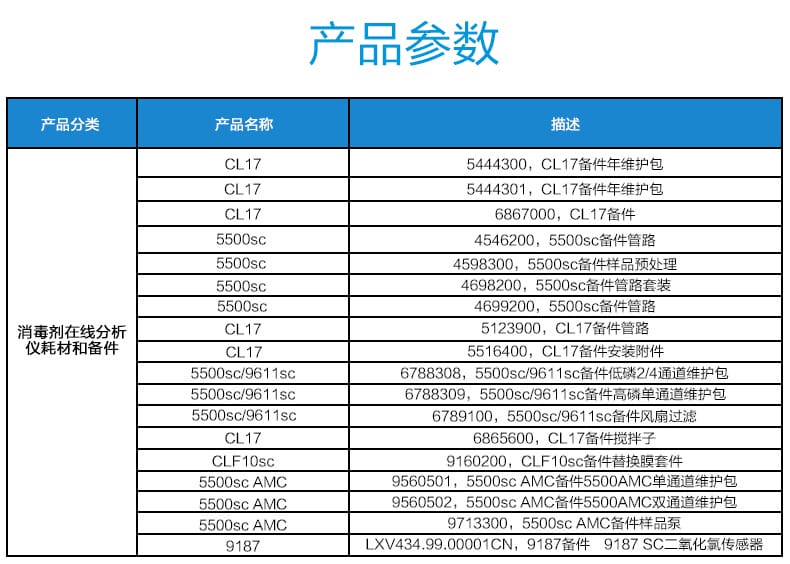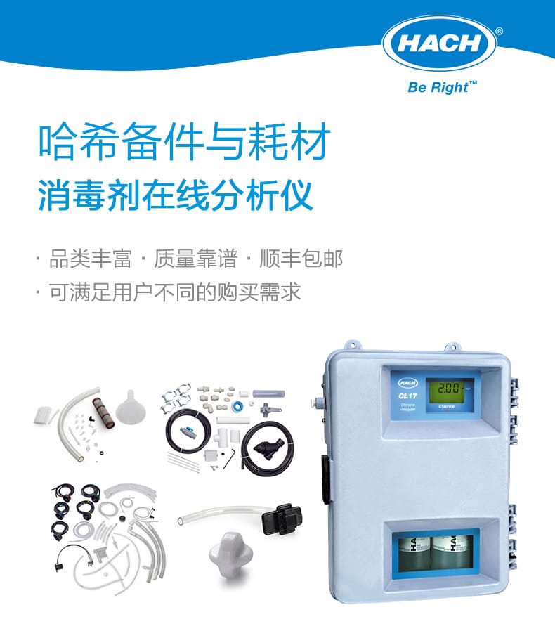 本店提供哈希(Hach)全系列消毒剂在线分析仪的原厂耗材与备件,适用于CL17、5500sc、9611sc、CLF10sc、9187等主流型号。产品包括年维护包、管路套装、样品预处理组件、风扇过滤件、搅拌子、替换膜套件及二氧化氯传感器等,均为原厂正品,品质可靠。支持7天无理由退换,顺丰包邮快速配送,助力高效精准的水质分析。订货商品请提前咨询客服货期,发票将在确认收货后10个工作日内开具并寄出。选择哈希,让水质监测更安心、更专业。