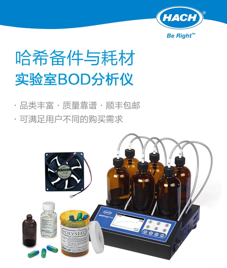 哈希(Hach)BOD分析仪专用备件与耗材,适用于BODTrak及BODTrak 2系列仪器,产品包括玻璃采样瓶、硝化细菌抑制剂、菌种、搅拌子、管路、数字管套、垫圈、瓶子围栏、风扇等原厂耗材。品类齐全,品质可靠,均为厂家直供正品,确保实验准确性与仪器稳定性。支持7天无理由退换货,顺丰包邮快速配送。适用于哈希全系列水质分析设备,是实验室水质检测的理想选择。