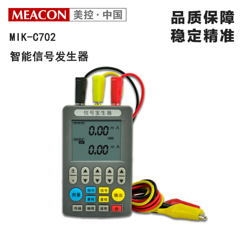 MEACON杭州美控C703系列多功能信号发生器是一款专为工业自动化系统调试设计的高精度工具,广泛应用于PLC、DCS、现场仪表、调节阀和变频器的维护与调试。产品集信号输出与测量于一体,支持直流电压(0-30V)、直流电流(0-25mA/4-20mA)、8种常用热电偶(K、E、J、T、R、B、S、N)及PT100热电阻信号输出与测量,具备0.1%F.S超高精度和0.01mA分辨率。 设备配备高清LED背光液晶屏和人性化硅胶按键,操作简便,支持中文界面,符合国人使用习惯。内置24V配电功能,可直接为二线制或三线制变送器供电并同步测量信号。支持编程输出功能,包括分割输出(n/m)和线性波形输出(上升/下降锯齿波),满足复杂工况模拟需求。 C703系列提供基础型、专业型、高级型多种配置,满足不同应用场景。机身小巧(115×70×26mm),采用锂电池供电,满负载续航7-10小时,适合现场作业。每台设备均通过三大出厂检测(输出、测量、外观),确保品质稳定可靠。已亮相德国汉诺威工业展,获得国际认可,是国产高端工控调试仪器的代表之作。