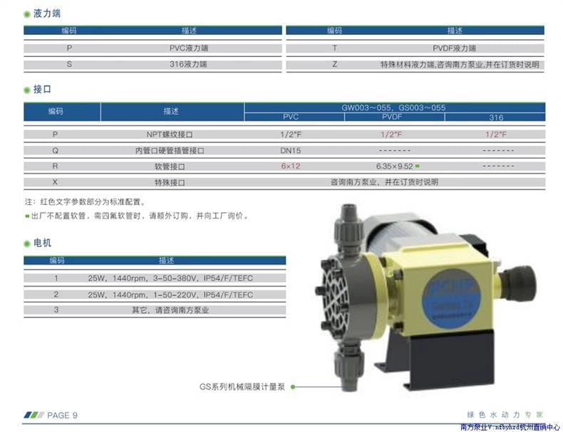 南方泵业(CNP)是中国领先的流体输送设备制造商,专业生产各类计量泵。本手册介绍其核心产品——GW、GS、GM、GB系列机械隔膜计量泵。GW/GS系列最大流量达53L/h,最高压力10bar,调节比10:1,稳态精度±2%,采用PVC、PVDF、316SS等多种泵头材质,适用于多种腐蚀性介质输送。GM/GB系列最大流量可达1800L/h,压力12bar,调节范围30%-100%,精度高达±1%,支持手动、电动及变频控制,广泛应用于石油化工、电力、冶金、医药和水处理等行业。所有产品具备自清洗单向阀、高吸入提升能力及可靠驱动结构,确保长期稳定运行。可选配脉动阻尼器、安全阀、背压阀等附件,满足复杂工况需求。