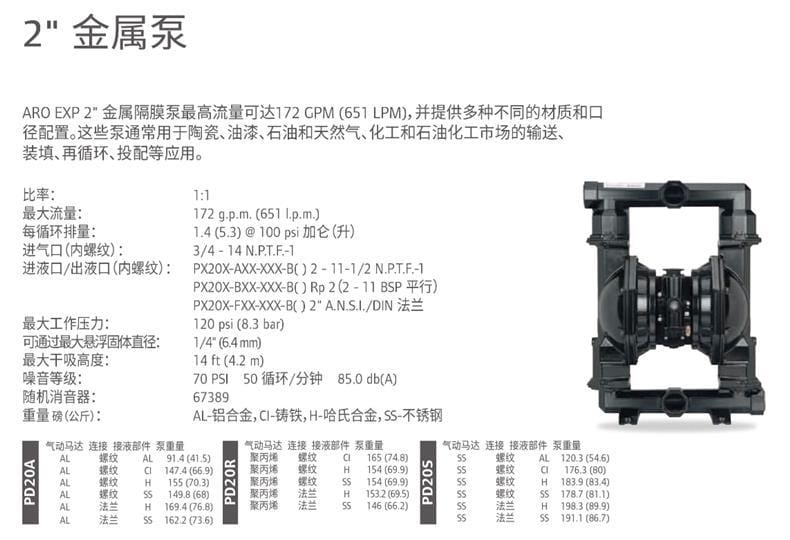〉 ARO英格索兰PD20A-BAP-AAA-B隔膜泵浦2寸铝合金气动隔膜泵化工泵