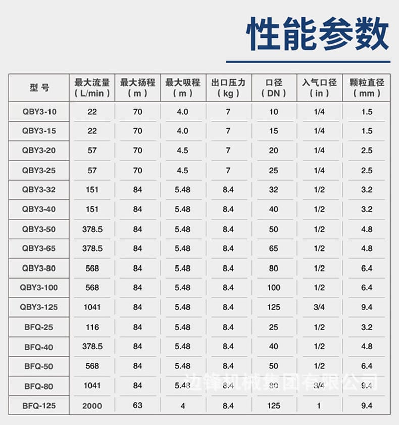边锋机械集团源自1990年,拥有33年制泵经验,专注隔膜泵、卫生泵、自吸泵、磁力泵等流体设备研发与生产。集团占地27000m²,拥有120多项专利及30多个服务网点,产品通过ISO9001质量管理体系、CE认证、浙江制造认证及防爆合格证等多项国际权威认证。 作为隔膜泵专家,边锋机械推出的QBY4系列气动隔膜泵具备大流量、大压力、强吸力、耐酸碱腐蚀、防爆防漏等优势,适用于化工、石油、食品、环保等多种工业场景。泵体采用高品质铝合金或不锈钢材质,配备升级马达与金属消声器,运行稳定、噪音低、寿命长,支持干运转,不卡气不死机。 产品提供五大材质选择:不锈钢、工程塑料、氟塑料、铝合金、球铁,并具备安全防爆、强吸程、可空打、免维护四大防护特性。全系通过3C认证,配件如特氟龙隔膜、气阀室组件等均耐腐蚀、易维护、成本低。 主要型号包括QBY3-10至QBY3-125及BFQ系列,流量覆盖22~2000 L/min,扬程最高达84米,满足多种工况需求。工厂直销,现货供应,支持全国及海外发货,提供专业售后团队与贴心服务,是世界500强企业如中粮、三一重工、徐工集团、比亚迪、国药集团等长期合作伙伴。