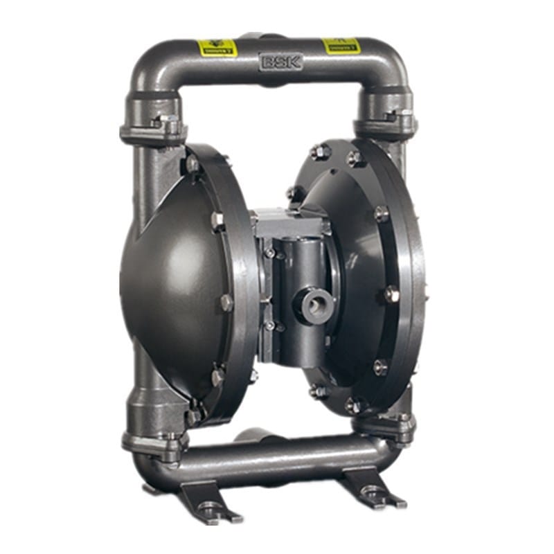 BSK气动隔膜泵是阔思(KUOSI)推出的高性能流体输送设备,产品系列包括铝合金泵(如BA25AL、BA40AL等)、塑料泵(如BP06PP、BA25PP等)、不锈钢泵(如BP15SS、BA50SS等)以及铸铁/铸钢泵(如BA50CI、BA80CI等),满足不同介质和工况需求。该泵采用压缩空气为动力源,具有自吸能力强、最大干吸可达6.7米,支持通过颗粒物尺寸达7mm,且无机械密封设计,杜绝泄漏风险。具备BSP、NPT螺纹及法兰连接形式,适配多种管路系统。配备进口与出口软管连接结构,有效降低管路振动;集成调压过滤器保障气源清洁干燥,提升运行稳定性;排气端加装消音器,显著降低噪音,改善工作环境。适用于化工、污水处理、电镀、食品等多种行业,是安全可靠的理想输送解决方案。
