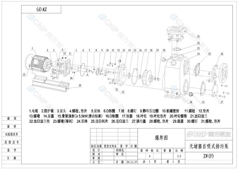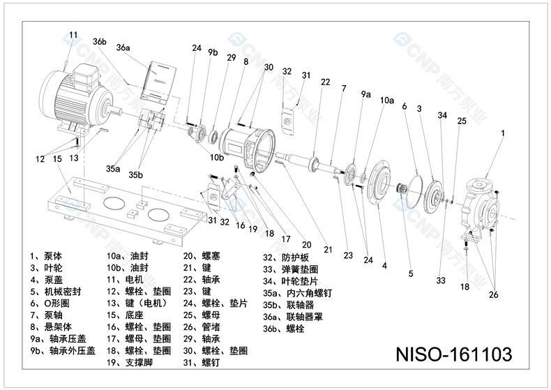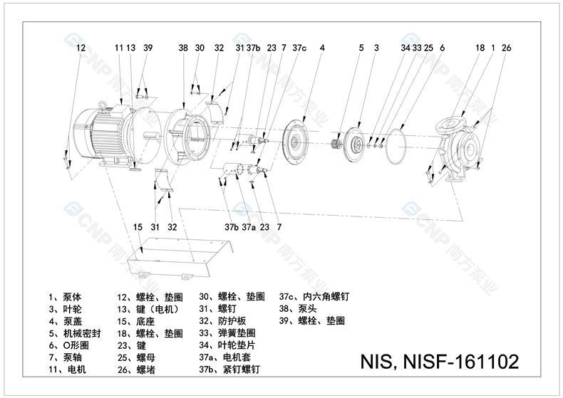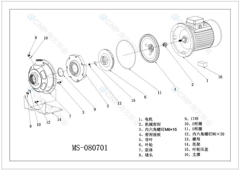 南方泵业配件机械密封叶轮泵轴泵芯转子总成衬板泵体水封南方配件
