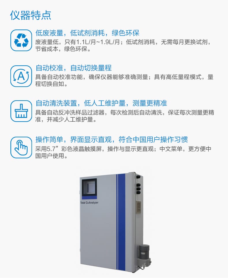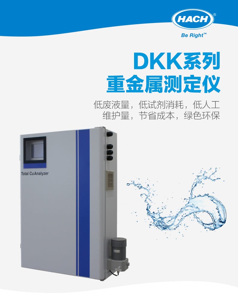 哈希DKK系列重金属测定仪(Total CuAnalyzer)专为地表水、工业废水和污水处理厂进排口的重金属检测设计,具备低废液量、低试剂消耗和低人工维护等优势,显著降低运行成本,符合绿色环保理念。
