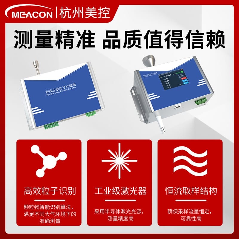 杭州美控(MEACON)DPC100与DPC1000系列在线尘埃粒子计数器,专为高精度环境监测设计,满足百级、千级、万级、十万级洁净室的颗粒物检测需求。产品基于激光散射原理,具备六通道同步检测能力(0.3μm、0.5μm、1.0μm、2.5μm、5.0μm、10μm),确保高效粒子识别和精准测量。 DPC100系列采样流量为2.83L/min,适用于常规洁净环境监测;DPC1000系列采样流量高达28.3L/min,配备等速采样探头,更适合高标准洁净区的连续在线监测。两款产品均具备≤8秒快速启动、1秒数据刷新频率、宽温工作范围(0℃~45℃)及多种通讯接口(RS485、RJ45、4-20mA),支持TCP/IP、MQTT协议,兼容性强。 DPC100X与DPC1000X型号配备3.5寸高清彩屏,支持中英文界面切换、多单位显示、实时报警提示,并可选配LED报警灯,提升现场可视化体验。内置工业级激光器与恒流取样结构,结合智能识别算法,保障长期运行的稳定性与准确性。 作为国家标准起草单位、“专精特新”企业,杭州美控拥有近100项技术专利,通过ISO、CE、SGS等多项权威认证,年产超30万台传感设备,服务客户超70万家,覆盖霍尼韦尔、农夫山泉、可口可乐、长安汽车、中船重工等知名企业,全国设有30+技术服务网点,提供快速响应支持。