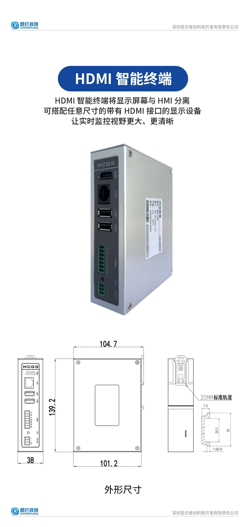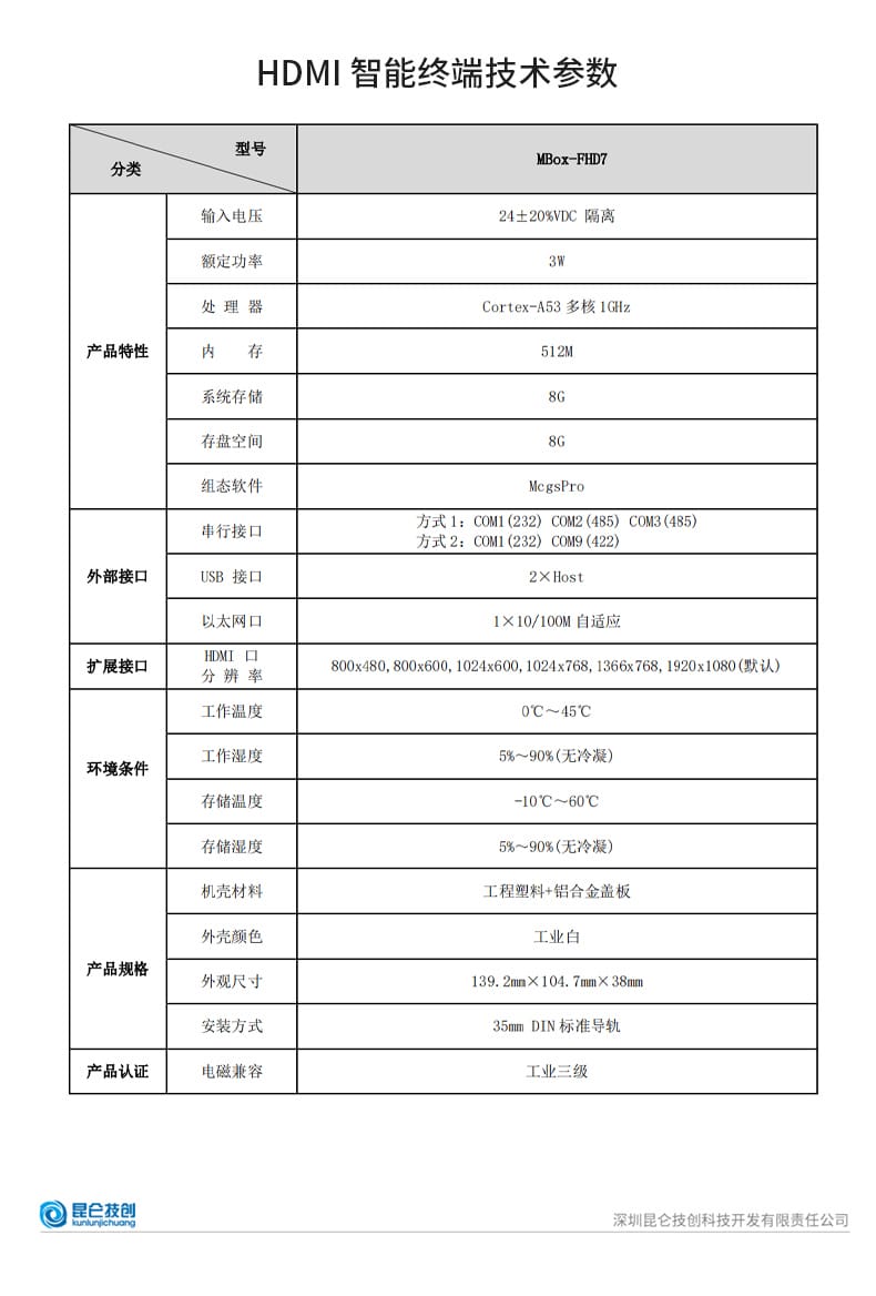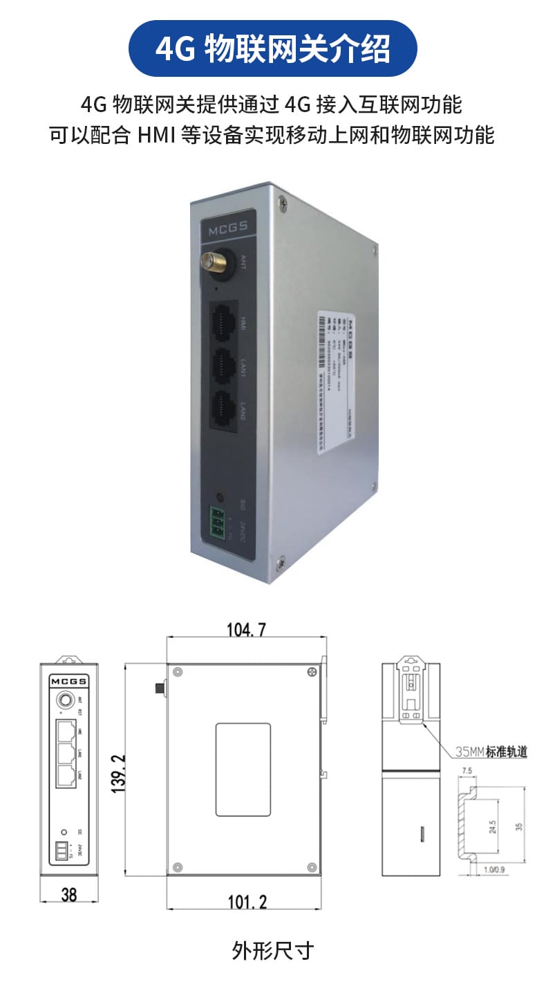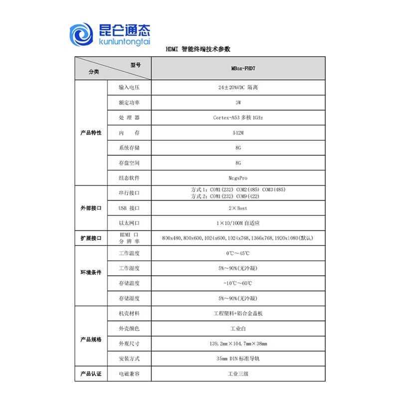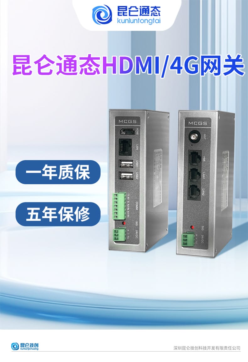 昆仑通态推出MCGS系列工业级智能终端与4G物联网解决方案,包含MBox-4GR 4G物联网关和MBox-FHD7 HDMI智能终端。MBox-4GR支持移动、联通、电信4G网络,配备3个10/100M自适应网口,可通过HMI口实现HMI设备移动上网,并支持PLC组网与串口透传功能,适用于远程监控与工业物联网应用。设备采用ARM 800MHz处理器,支持35mm标准导轨安装,工作稳定可靠。MBox-FHD7 HDMI智能终端搭载Cortex-A53多核1GHz处理器,内置512M内存与8G存储,支持最高1920x1080高清输出,可外接任意HDMI显示设备,实现大屏实时监控。具备RS232/485/422多种串口及USB、以太网接口,兼容多种下位机设备,适用于工业现场看板、数据可视化等场景。两款产品均通过工业三级电磁兼容认证,支持宽温运行,外壳采用工程塑料+铝合金盖板设计,美观耐用,是工业自动化与物联网系统集成的理想选择。