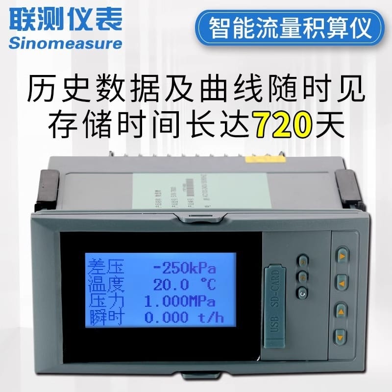 联测仪表(Sinomeasure)智能液晶流量积算仪是一款高性能工业自动化仪表,专为精确流量计量设计。产品搭载32位ARM处理器,运算能力强,支持电流、电压、热电阻、热电偶、频率等多种输入信号,具备流量积算、温压补偿和变送输出功能。测量精度达0.2%FS±1d,配备3.5英寸高分辨率液晶屏,实时显示差压、温度、压力及瞬时流量等参数。支持RS485/RS232通讯,MODBUS RTU协议,可实现数据远传与系统集成。内置大容量存储,记录间隔可调,最长存储可达720天,并支持U盘导出与打印机连接。产品通过ISO9001与CE认证,符合工业电磁兼容标准,适用于医药、水处理、食品加工、化工等多个行业。全国30大办事处提供24小时技术支持与售前售后服务,确保稳定运行。