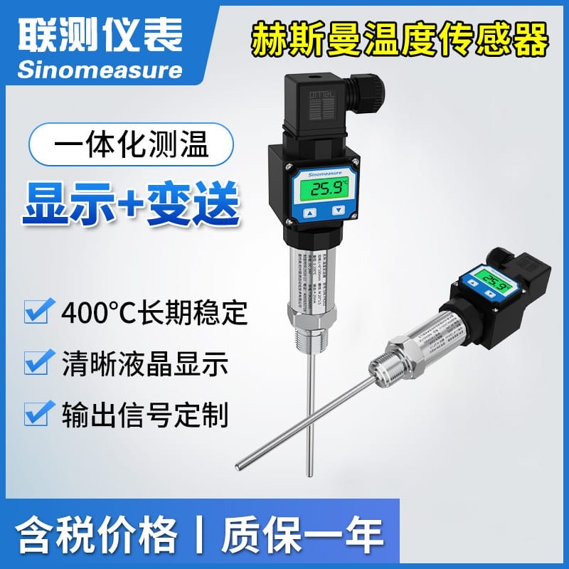 联测仪表Sinomeasure LC-P202是一款高精度、工业级一体化温度变送器,内置德国久茂(JUMO)感温芯片,确保测量精准、响应迅速。产品测温范围为-50℃~350℃,精度达0.5%,年稳定性≤0.2%F.S,输出信号为标准4-20mA,供电电源为24V±10%,适用于各类工业温控场景。 设备采用304不锈钢外壳,具备IP65防水防尘等级,抗射频干扰,耐腐蚀、耐高压,适用于油、液体、气体、固体及机械表面等多种介质环境。支持M20*1.5、G1/2、G1/4、G3/4等螺纹接口,插深可定制(30mm~1200mm),满足不同工况安装需求。 LC-P202为无显示型号,LC-PX202为带高清液晶显示型号,便于现场实时读数。产品广泛应用于化工、环保、制药、食品饮料等行业,已服务娃哈哈、清华同方、东江环保、中核控制、华为、比亚迪等知名企业。联测仪表全国设有20余个服务网点,提供售前选型、上门调试、安装指导与售后支持,确保客户使用无忧。
