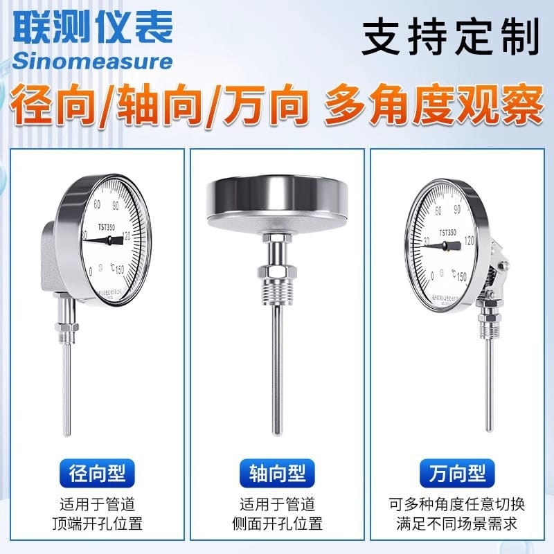 〉 联测不锈钢双金属温度计WSS径向轴向万向工业管道锅炉温度表耐震