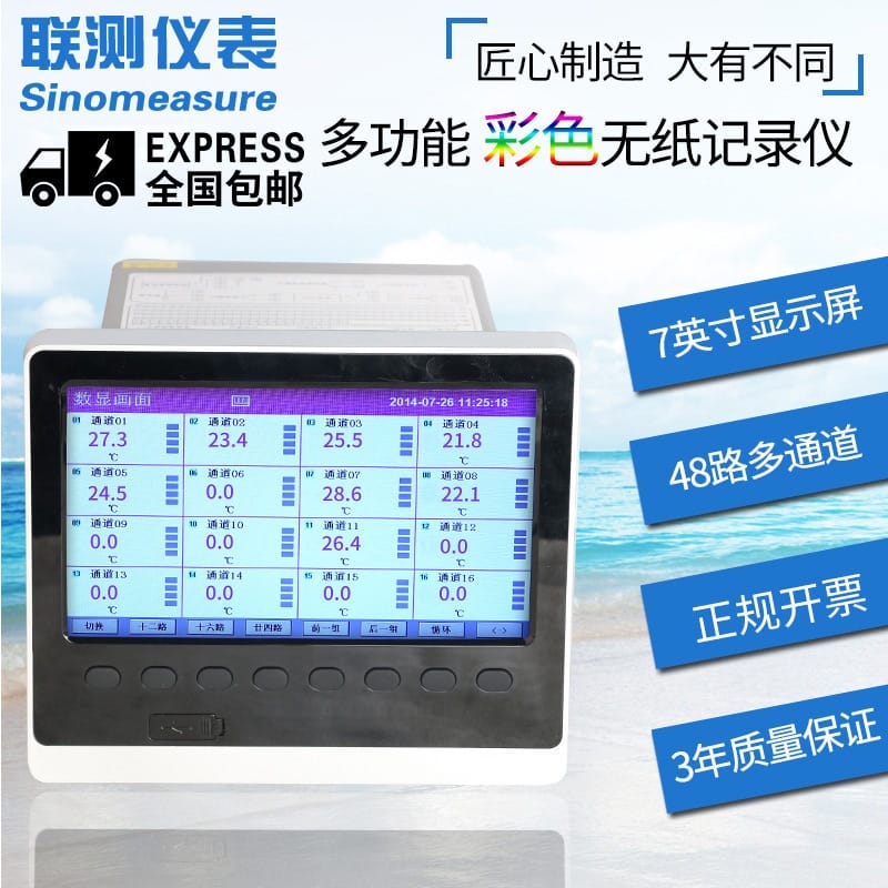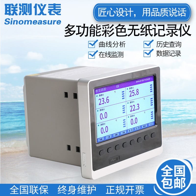 〉 联测 智能彩屏无纸记录仪 1-48路温度湿度电流流量曲线信号记录仪
