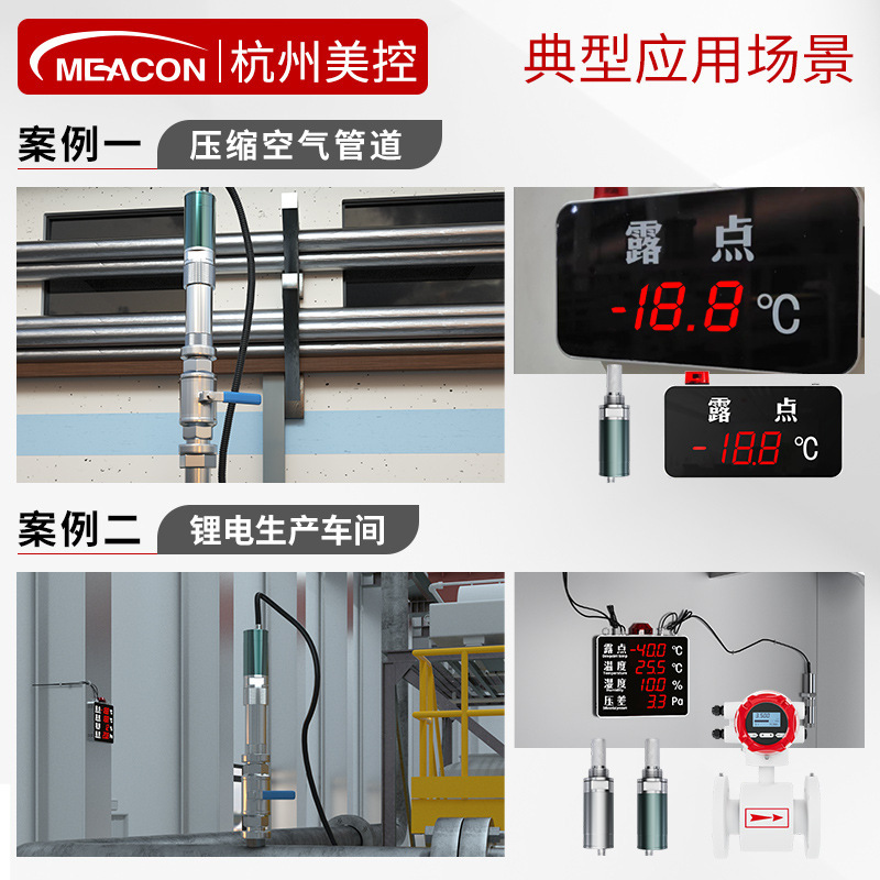 杭州美控(MEACON)专注环境监测领域,提供高精度露点变送器及成套解决方案,适用于锂电生产车间、压缩空气管道、洁净厂房等关键工况。产品涵盖多种型号,如DPT163、DPT263、DPT183XP等,测量范围覆盖-100~+60℃,精度高达±2℃,采用高分子薄膜电容或氧化铝传感器,具备IP66防护等级,耐高温、耐腐蚀,稳定可靠。 产品支持RS485/4-20mA输出,可选配1.5寸液晶触屏、声光报警、数据存储(最长2年,40万条记录)、U盘导出等功能,实现温度、湿度、露点、压差、含水量等多参数一体化监测。支持与显示屏看板联动,超限自动报警,适用于新能源、锂电、化工、石化、食品药品等领域。 作为国家标准起草单位和‘专精特新’企业,美控拥有近百项技术专利,通过ISO9001、CE、SGS等认证,累计服务客户超70万家,广泛应用于农夫山泉、可口可乐、长安汽车、中国航天、中船重工等知名企业。全国设有30+办事处,支持快速发货与技术支持,是进口品牌维萨拉等的理想国产替代选择。