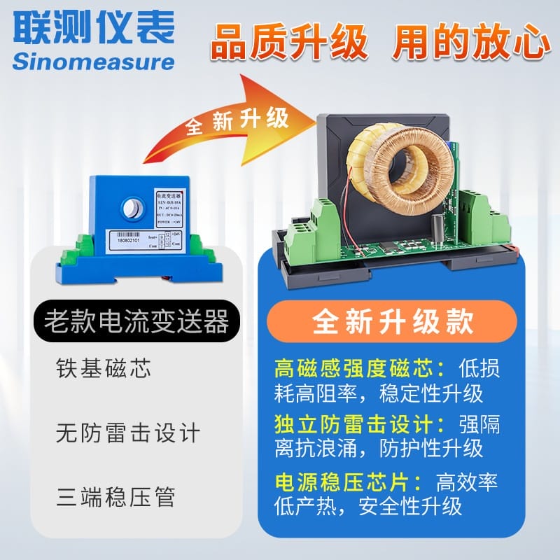 联测(Sinomeasure)交直流电流变送器是一款高精度(0.3级)、高性能的电量测量设备,专为工业自动化系统设计。产品采用纯铜线圈与高强度磁芯,结合多层绝缘保护结构(包括隔断层、电工胶层和外层阻燃保护),确保长期运行稳定、低发热、抗干扰能力强。支持多种输入量程(如AC 0-50A、0-200A等)和输出信号(4-20mA、0-5V、RS-485等),适配PLC、数显仪、记录仪等多种控制系统。 产品通过ISO9001质量管理体系认证及CE认证,符合EN61326、GB/T19001等标准,具备DC2500V隔离耐压、防雷抗浪涌模块和宽温工作能力(-10℃~+80℃),适用于复杂工业环境。外壳采用ABS阻燃材料,安装方式支持35mm DIN导轨或螺钉固定,便于集成。 联测拥有十余年产电测量研发经验,服务超50万客户,远销160多个国家,被娃哈哈、蒙牛、华为、中石油等大型企业广泛采用。全国设有20余个办事处,提供售前选型、上门调试、售后维护一站式服务,致力于为工业电量监控提供可靠解决方案。